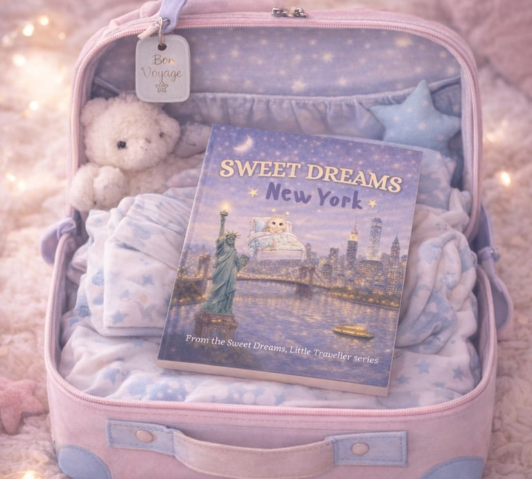 Sweet Dreams, Little Traveller is a calming children’s book series designed to help little ones drift peacefully into sleep—while gently introducing them to the beauty of the world with a help of a friendly creature travelling on a magic flying bed.